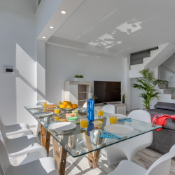 The upper floor, at street level, has 4 double bedrooms, 2 bathrooms and a terrace with ocean views.